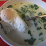 A traditional breakfast in Bogota is changua, a milk, scallion, and egg soup.