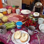 Germans have quite the spread for breakfast. There’s a little bit of everything: cold cuts, cheese, fresh rolls, butter and jam, and sometimes Nutella.