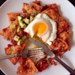 Mexican comfort food at its finest, chilaquiles are totopos (similar to tortilla chips) submerged in a spicy sauce with a fried egg and various toppings like avocado.