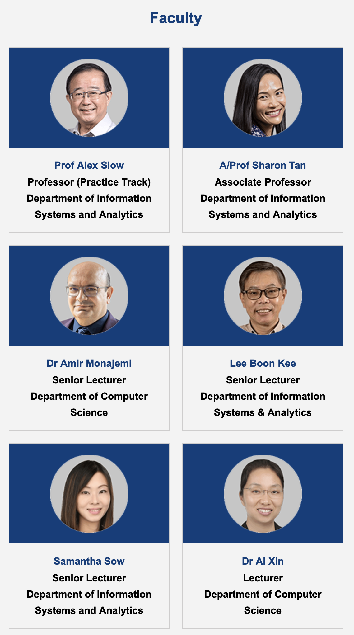 | NUS School of Computing is collaborating with online education provider Emeritus to offer a portfolio of high-impact online programmes. Working with Emeritus gives NUS School of Computing the advantage of broadening its access beyond their on-campus offerings in a collaborative and engaging format that stays true to the quality of NUS School of Computing. Emeritus’ approach to learning is based on a cohort-based design to maximise peer-to-peer sharing and includes video lectures with world-class faculty and hands-on project-based learning. Emeritus Institute of Management | Committee for Private Education Registration Number 201510637C | Period: 29 March 2022 to 28 March 2026. |
