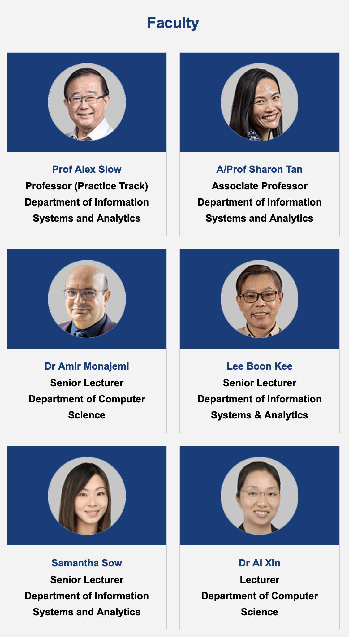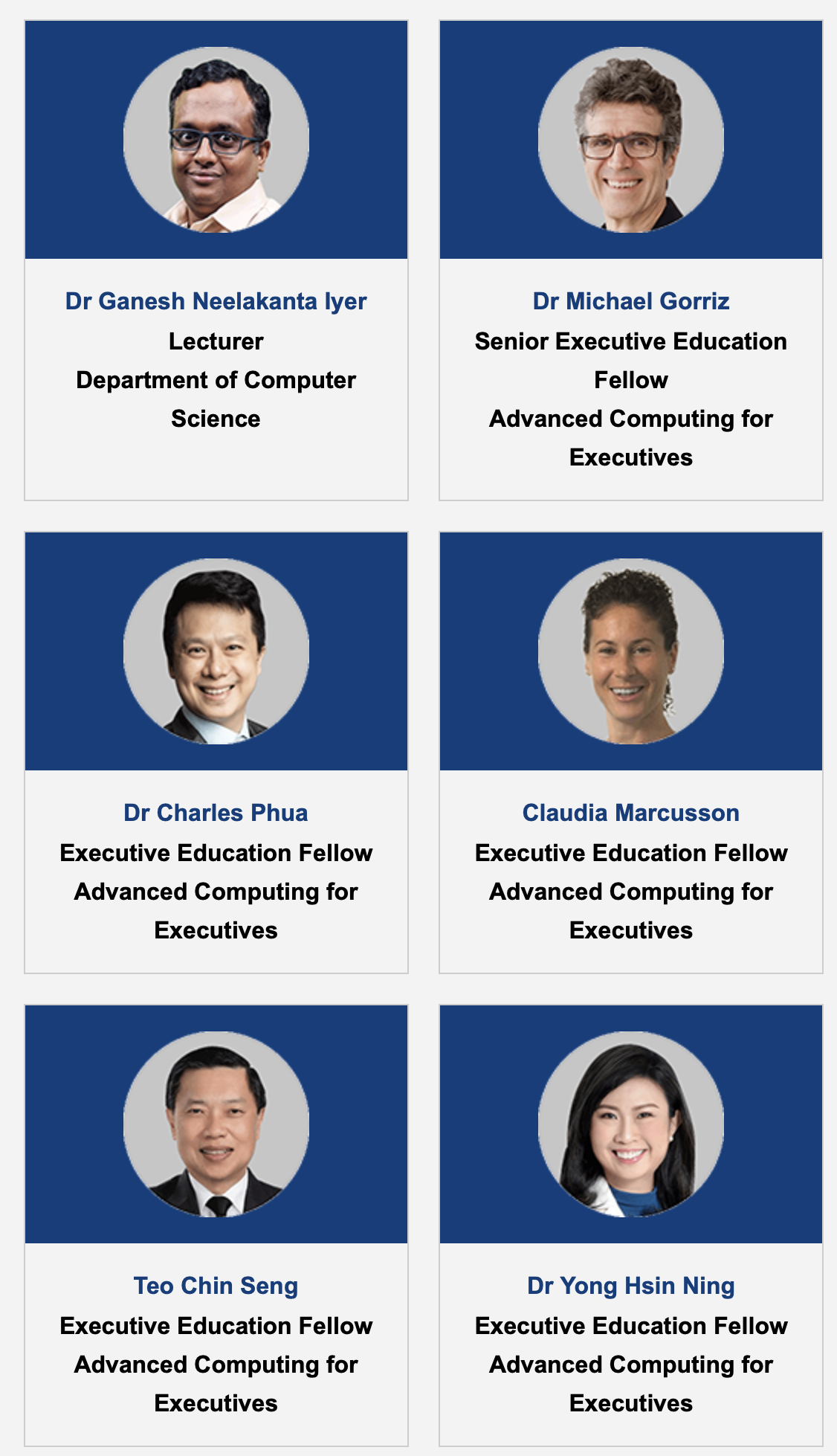 | NUS School of Computing is collaborating with online education provider Emeritus to offer a portfolio of high-impact online programmes. Working with Emeritus gives NUS School of Computing the advantage of broadening its access beyond their on-campus offerings in a collaborative and engaging format that stays true to the quality of NUS School of Computing. Emeritus’ approach to learning is based on a cohort-based design to maximise peer-to-peer sharing and includes video lectures with world-class faculty and hands-on project-based learning. Emeritus Institute of Management | Committee for Private Education Registration Number 201510637C | Period: 29 March 2022 to 28 March 2026. |