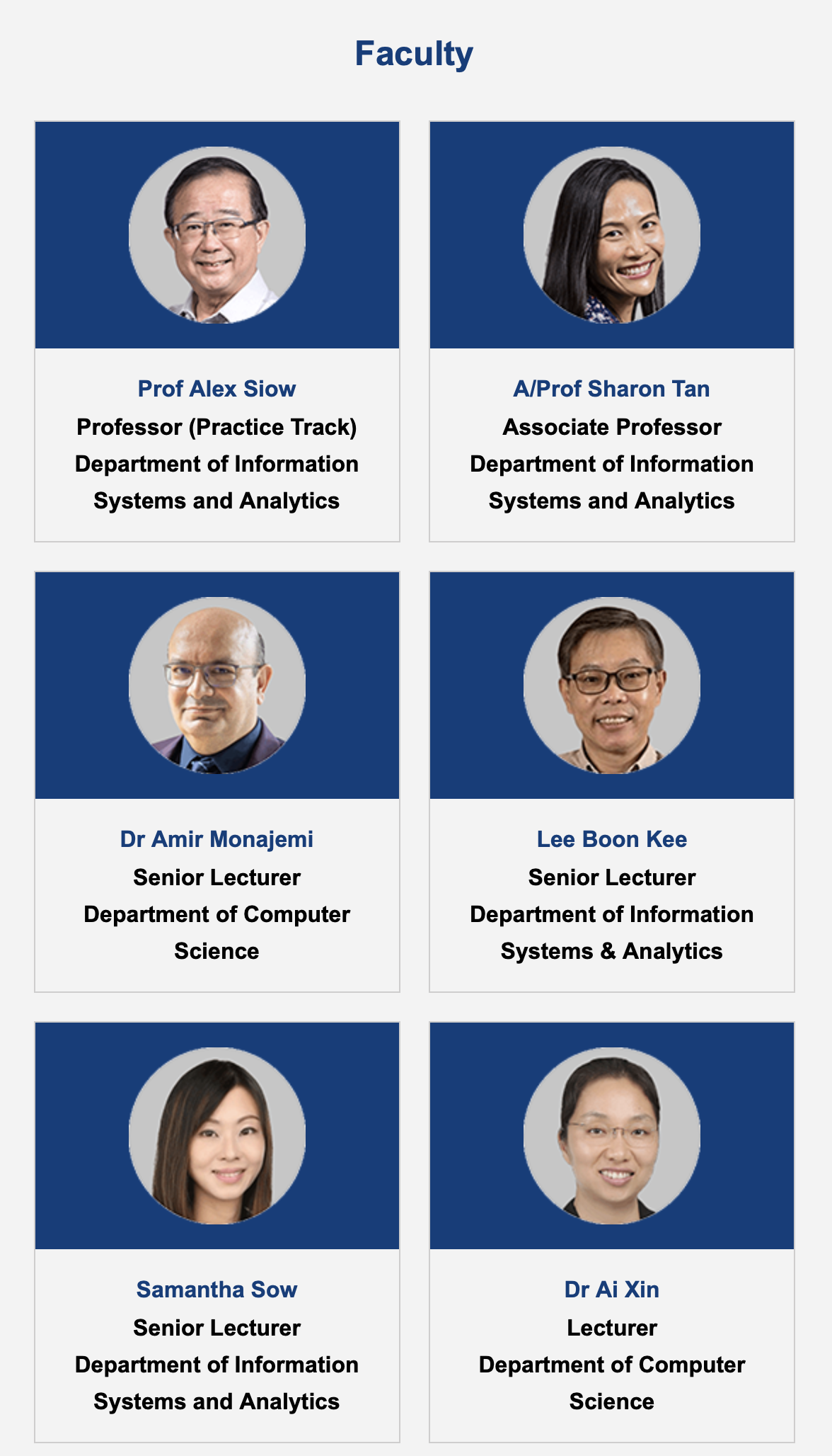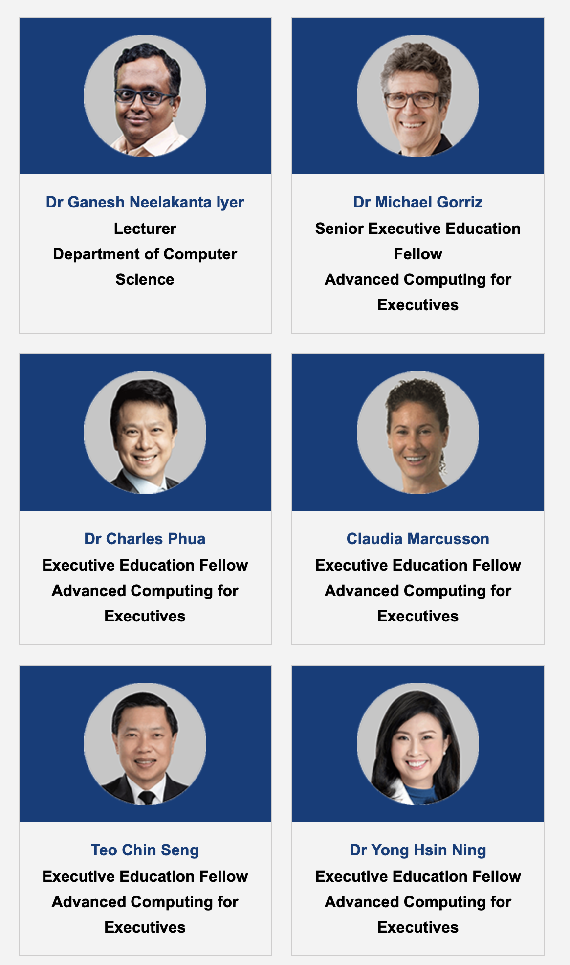 | NUS School of Computing is collaborating with online education provider Emeritus to offer a portfolio of high-impact online programmes. Working with Emeritus gives NUS School of Computing the advantage of broadening its access beyond their on-campus offerings in a collaborative and engaging format that stays true to the quality of NUS School of Computing. Emeritus’ approach to learning is based on a cohort-based design to maximise peer-to-peer sharing and includes video lectures with world-class faculty and hands-on project-based learning. Emeritus Institute of Management | Committee for Private Education Registration Number 201510637C | Period: 29 March 2022 to 28 March 2026. |