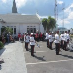 Cayman’s Veteran Association members were at the centre of the ceremony although the first wreath of poppies laid on the cenotaph was executed by Governor Kilpatrick. She was followed by the Premier and then leader of the Opposition McKeeva Bush. A member of the Veterans laid a wreath and then others by members of the public most representing Grand Cayman’s various churches. The cenotaph was soon surrounded by a band of red, although I did not think there were as many wreaths laid this year as previous.