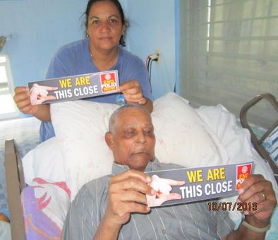 Mr McNeil Hurlston: I was born on the 22nd January 1929 in Spot Bay but I live now in my own house at The Rock. I contracted polio when I was about 8 months old. I had a high fever but there were no hospitals or doctors on island so my parents and the older folks did the best for me. I walked with a limp because my left leg was affected but I had many friends at school and no one tried to bully me. Of course I was big man and very strong and enjoyed boyhood days like nothing was wrong. (Pictured left with caregiver Lendell Moore Scott)