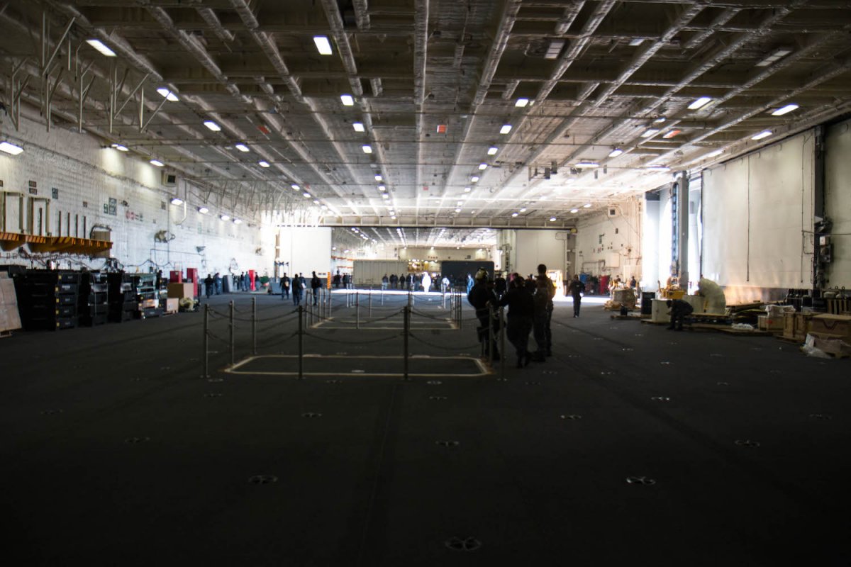 This is one of the advanced weapons elevators, which connect to the flight deck and allows sailors to move ordnance from the magazines to the aircrafts.