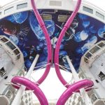 1. The Ultimate Abyss. Why shouldn’t the world’s largest ship have the tallest slide at sea? It’s hard to miss the 10-story side-by-side slides, towering more than 150 feet above sea level on the aft of the ship. To get to the slide, riders must cross a clear platform suspended above the 90-plus-foot drop, which is scary enough. The slide — it’s dry, no water involved — takes thrill seekers on a multi-sensory ride from Deck 16 to Deck 6 in about 14 seconds in a 2.6-diameter tube. Why use an elevator?