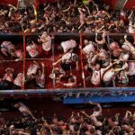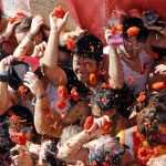 Streets of Spanish village splattered with tomatoes after the world’s largest food