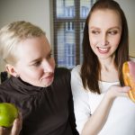 Mandatory Credit: Photo by Tuomas Marttila/REX/Shutterstock (791854o) Model released – Women and diet. Women with a doughnut and an apple Various – 2008