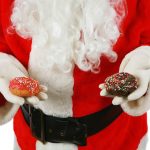 Headless Santa gets doughnut grease on otherwise pristine white gloves
