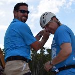 2 Greg Smith of the YMCA (left) helps Deputy Governor put on his harness and safety gear.
