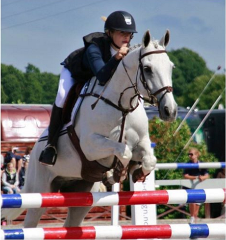 She is sponsored by Kingsland and Samshield, equipment and helmet companies for horseback riders.